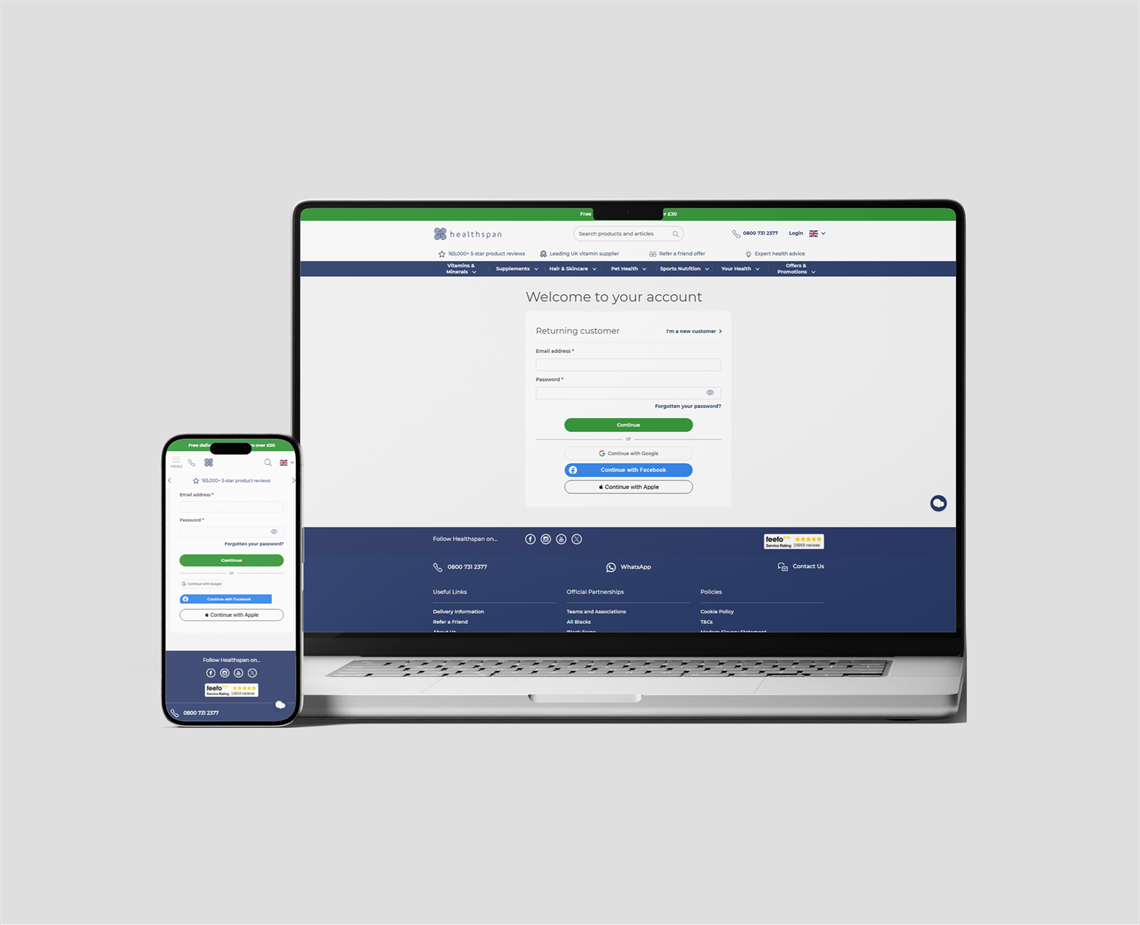 Healthspan, one of the UK's leading direct-to-consumer supplier of vitamins, minerals, and health supplements, recently introduced direct social login to their website. Customers can now sign in using Google, Facebook, or Apple, making access quicker and reducing friction at registration.